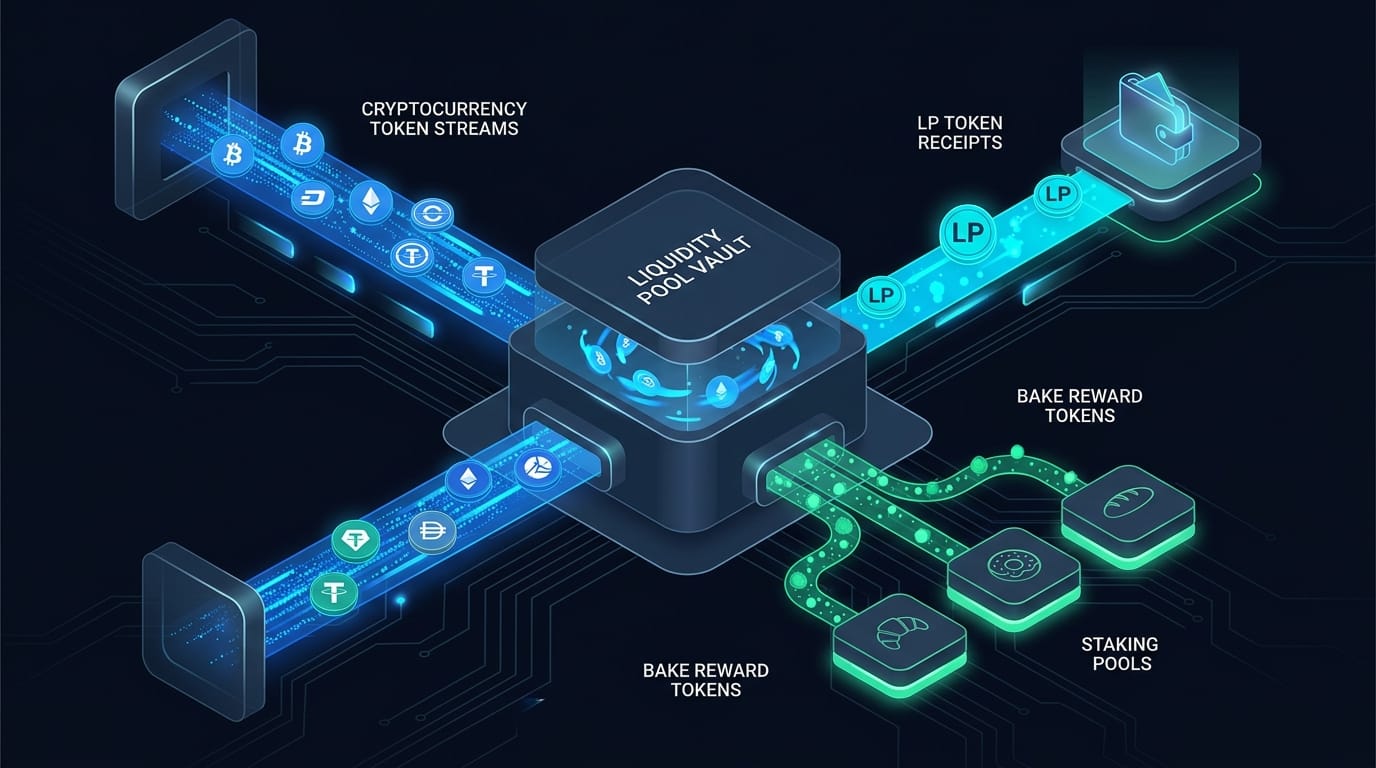 Liquidity providers deposit both tokens in equal value. They receive BLP tokens (BakerySwap Liquidity Provider tokens) proportional to their share of the pool. These BLP tokens are redeemable at any time for the underlying assets plus accumulated trading fees.
