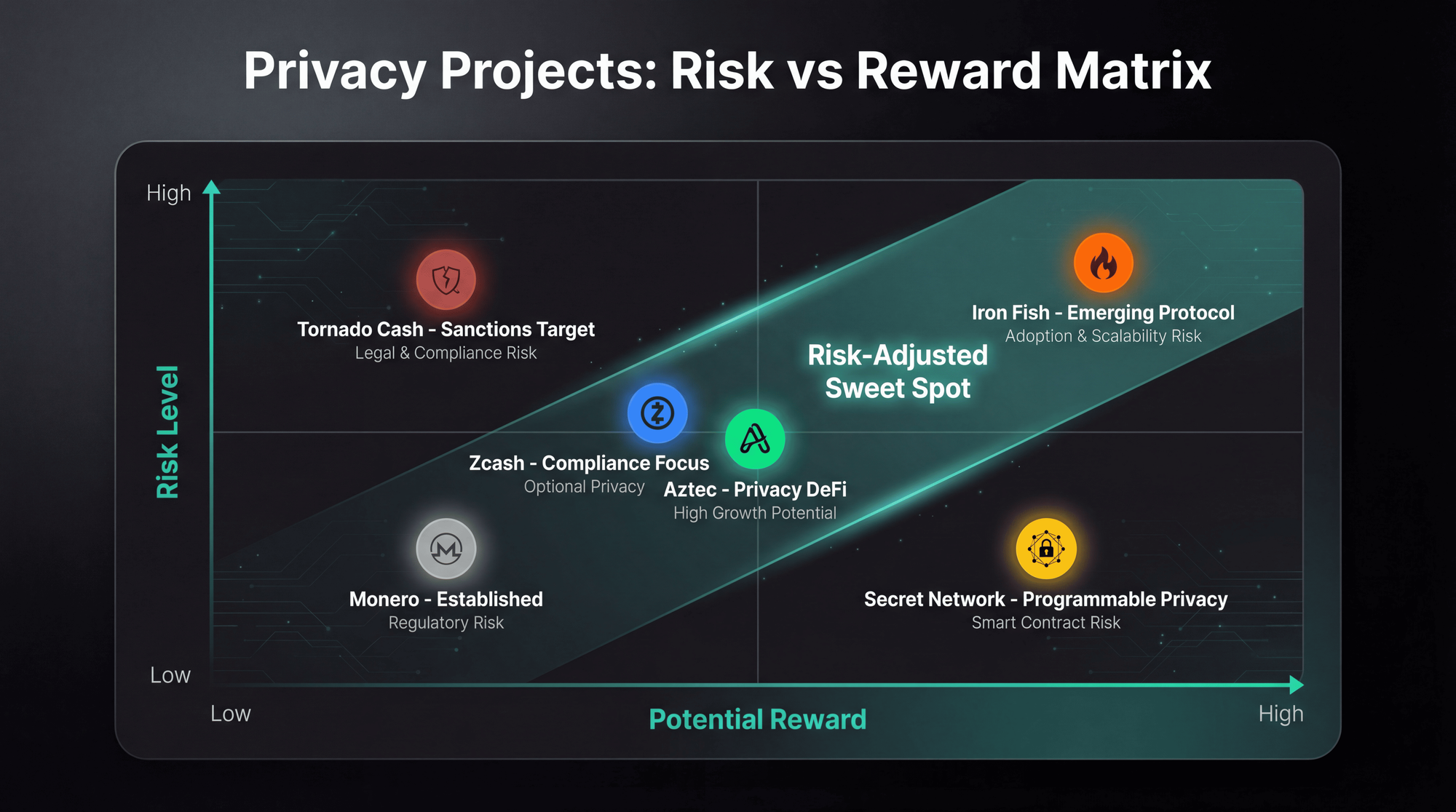 Smart Contract Risk: Privacy protocols involve complex cryptography. Bugs in ZK circuits or FHE implementations could compromise funds or privacy.
