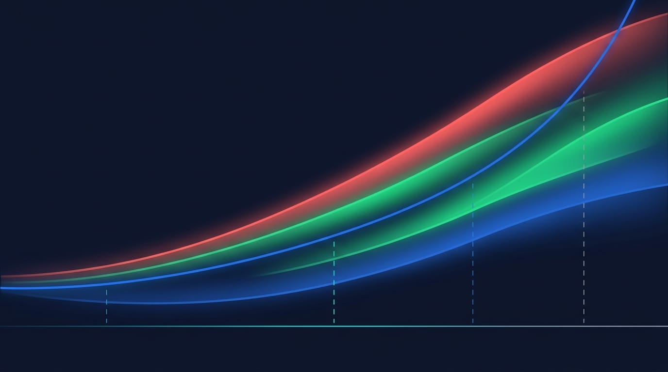 Swing Traders treat the rainbow chart as a macro frame and execute on RSI/MACD signals within that context. If the macro band is orange (overvalued) and RSI is approaching 75, the thesis for a short position is more compelling than if the band were yellow and RSI were at 55. The rainbow chart doesn't generate the trade signal - it confirms or challenges the trade context.