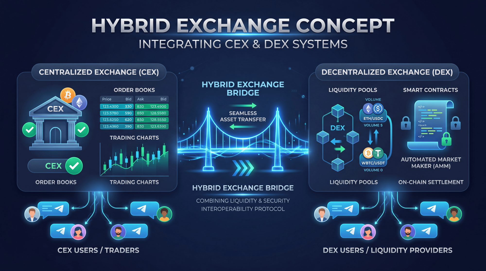Blum is a hybrid cryptocurrency exchange built directly inside Telegram. Co-founded by former Binance executives Gleb Kostarev and Vladimir Smerkis, the platform offers access to over 30 chains - including TON, Solana, Ethereum, and BNB Chain - combining an off-chain order book with on-chain settlements. Unlike standalone exchanges, Blum operates as a Telegram mini-app, meaning you never leave your messaging client to swap tokens, farm points, or play mini-games.