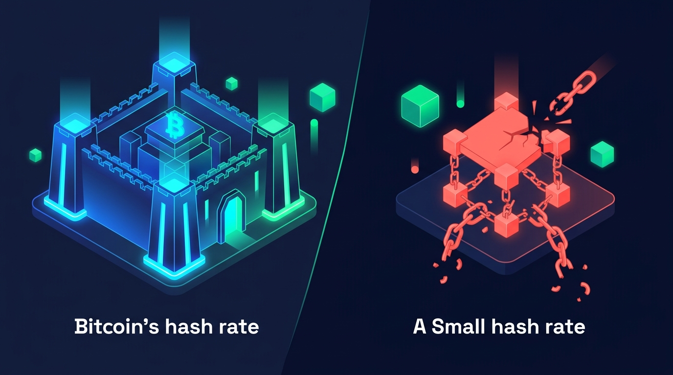 Why can't this happen to Bitcoin? The economics. Acquiring 51% of Bitcoin's hash rate would require hundreds of millions of dollars in ASIC hardware, plus ongoing electricity costs that dwarf any potential profit. The network's scale is its security. Small-cap PoW chains - especially newer ones with low mining participation - don't have that protection.