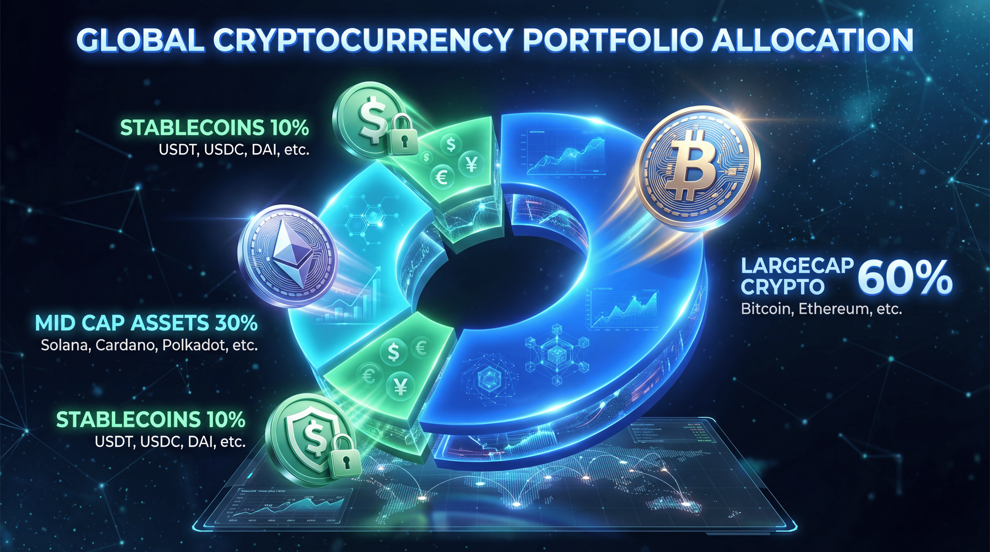 A balanced crypto portfolio typically follows this allocation: