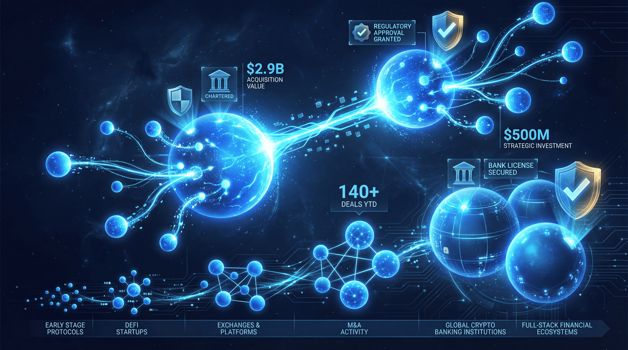 According to Silicon Valley Bank, M&A activity hit an all-time high in 2025: more than 140 VC-backed crypto companies were acquired, a 59% year-over-year increase. Notable deals include:
