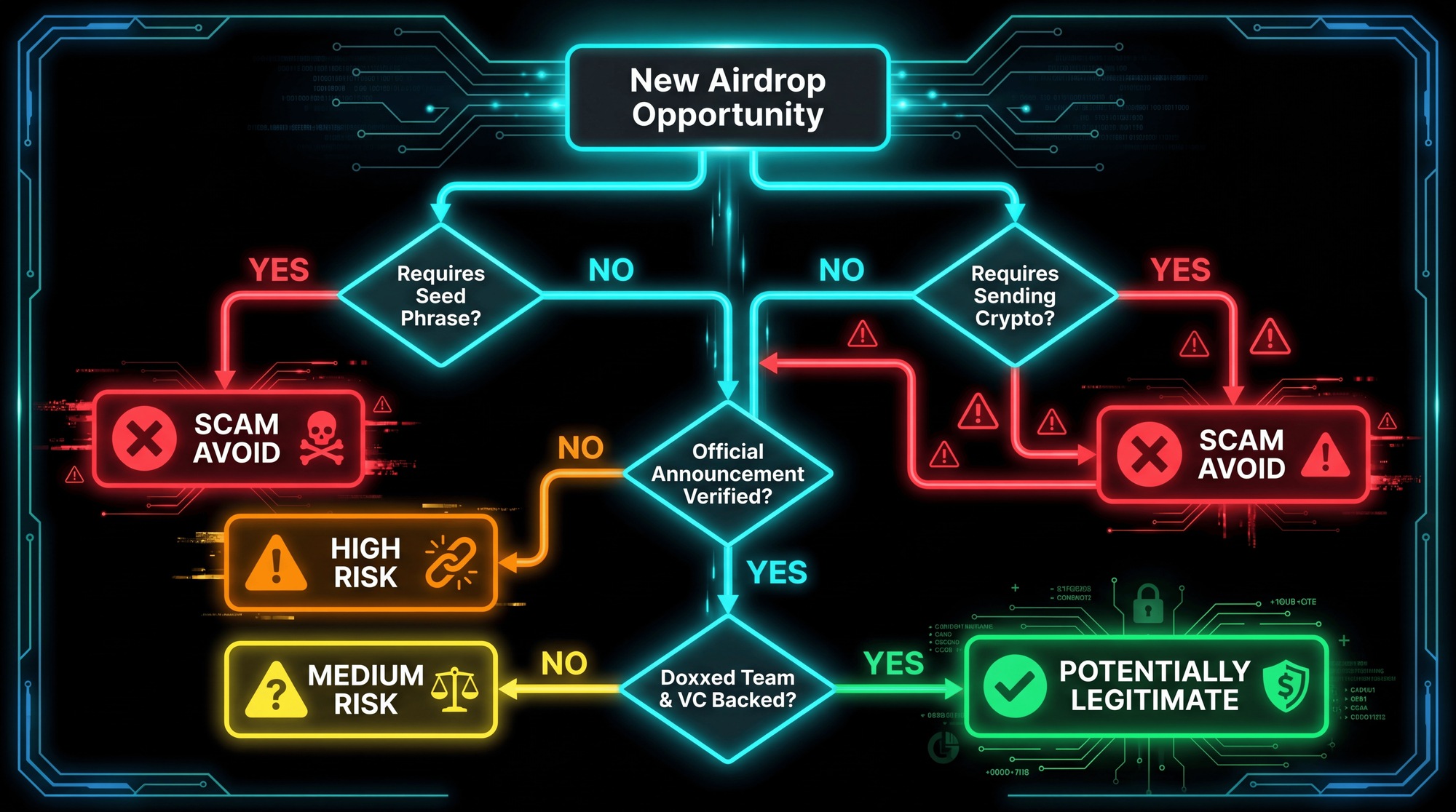To spot high-potential airdrops, look for projects with major VC backing (a16z, Paradigm, Sequoia), working products with real TVL, and transparent teams. Avoid anything that asks for your seed phrase, requires upfront payments, or comes through unsolicited DMs. The best airdrops (Hyperliquid, Uniswap, Arbitrum) rewarded genuine users - not farmers chasing quick profits.