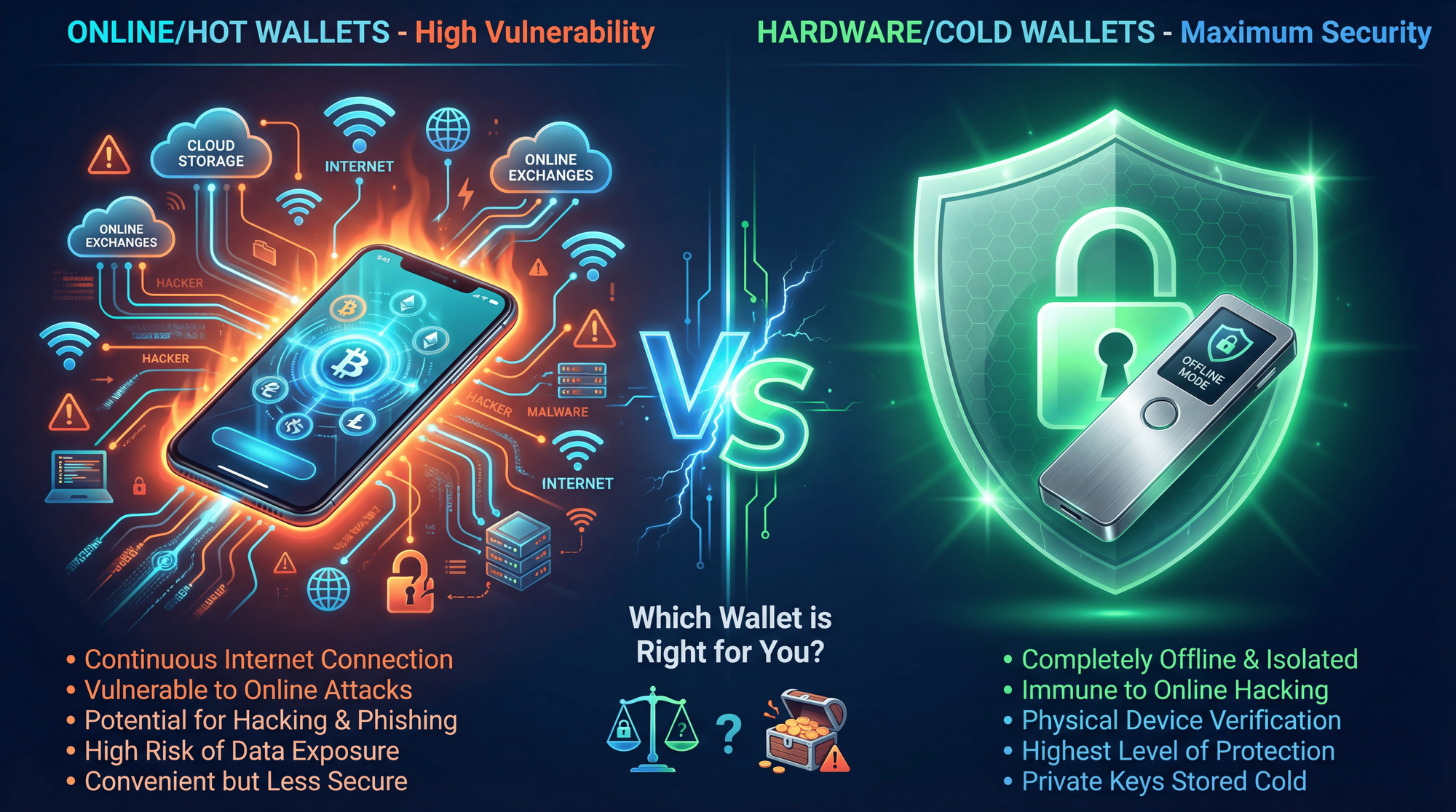 Risks: Vulnerable to malware, phishing attacks, browser exploits, and remote hacking. In 2025, personal wallet compromises accounted for 44% of all stolen value - up from just 7.3% in 2022.