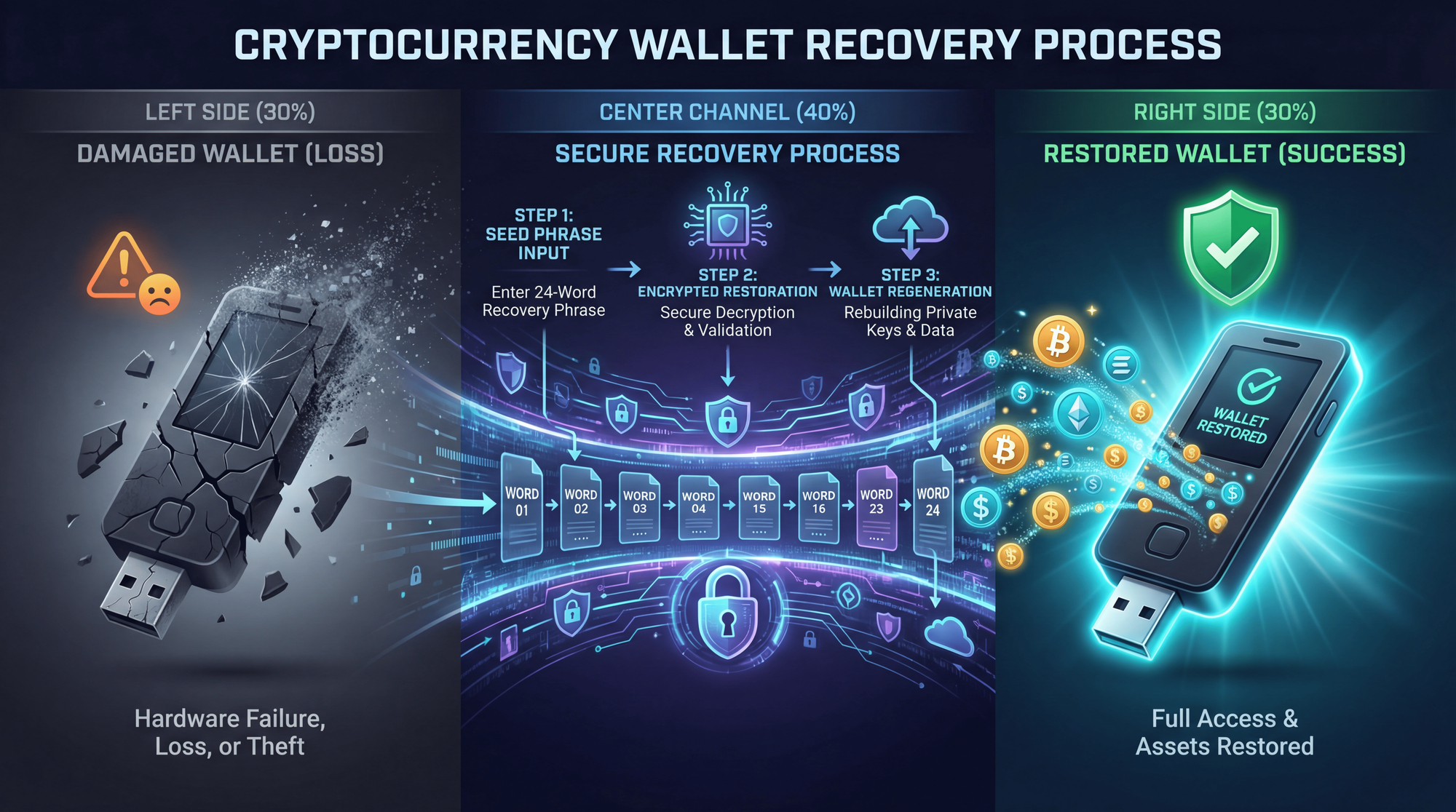 The risk: After losing access to a wallet, desperate users search for "crypto recovery services" - 99% are scams that steal any remaining access.