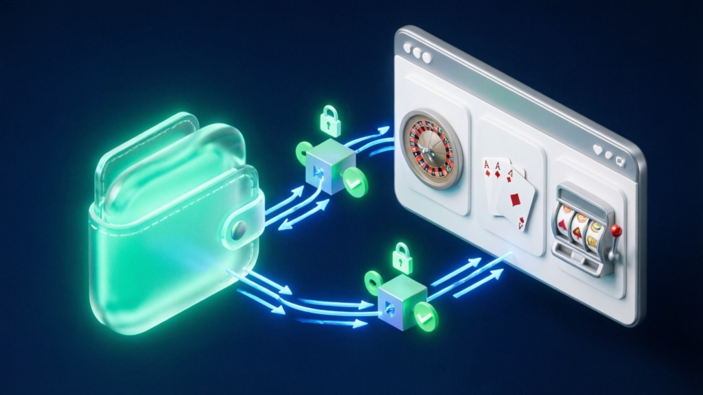 The transaction flow is wallet-to-wallet. When you deposit, you're transferring crypto from your private wallet - MetaMask, Trust Wallet, Ledger, or a similar self-custody solution - directly to the casino's smart contract address. Withdrawals reverse the process. No bank approval required. No payment processor intermediary.