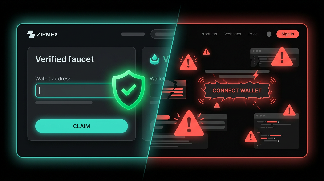 The single biggest red flag: any faucet that asks you to connect your wallet and sign a transaction. Real faucets only need your public address. A wallet-connection prompt on a faucet site is a drainer, not a faucet.