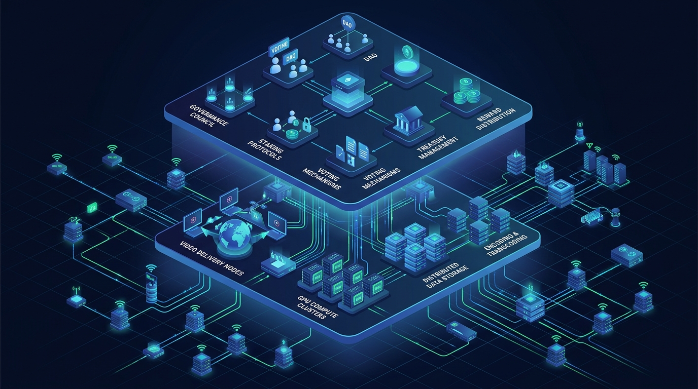 The network runs on a dual architecture. First, the Theta Blockchain handles staking, governance, payments, and smart contracts - the financial and organizational layer. Second, the Theta Edge Network manages the actual delivery work: decentralized video streaming, distributed storage, and GPU computing workloads. These two layers operate in tandem, but they serve different functions and use different tokens.