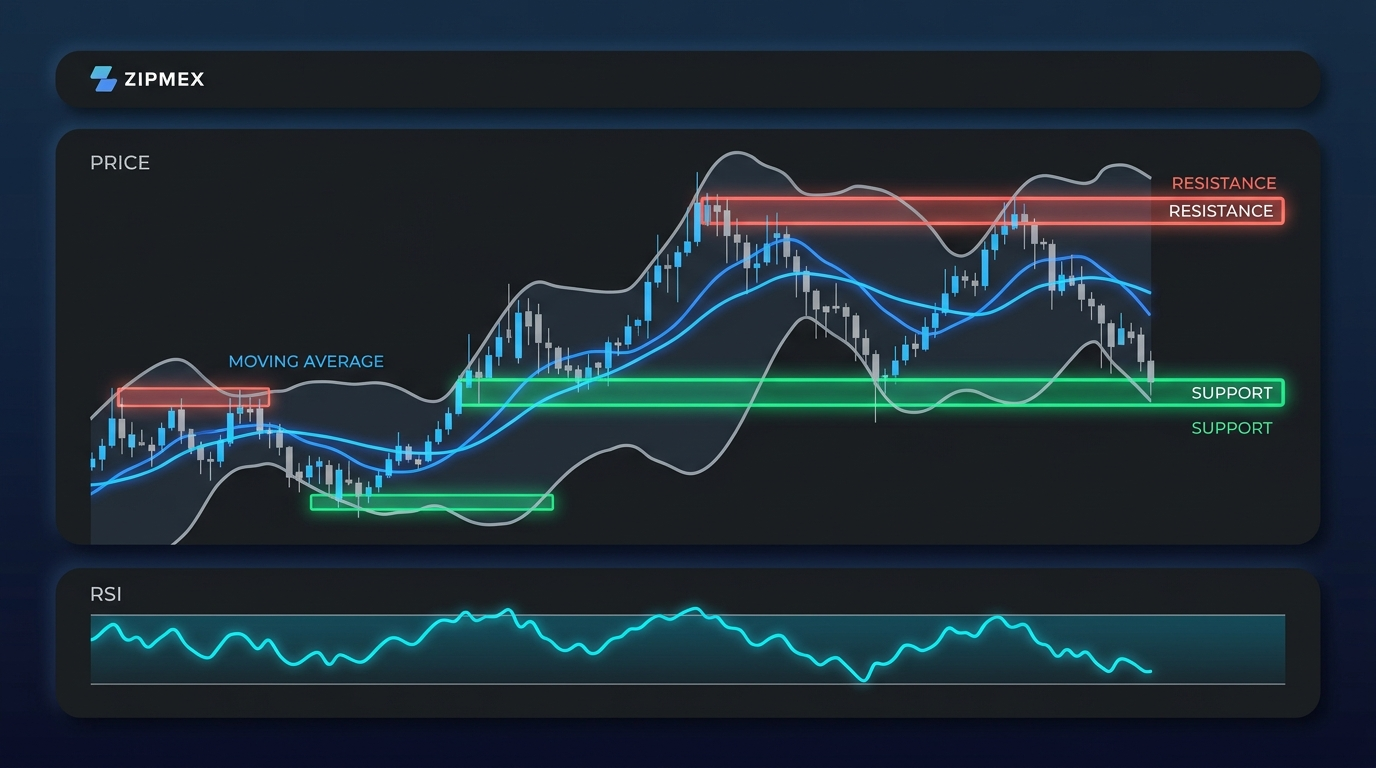 Five indicators dominate professional TRX technical analysis. Each tells a different part of the story - and reading them together gives a clearer picture than any single signal alone.