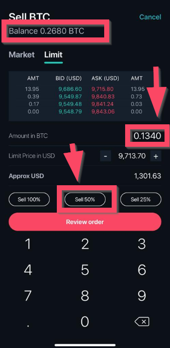 A new order is when you want to place an order to buy or sell an asset on the exchange. At Zipmex, we have an option to make it easier for you to specify the order amount no matter what kind of order you are placing. You can either specify your trading amount or choose the percentage of your balance for the order. In the screenshot below, we have 0.2680 BTC in the account. We click sell 50% and your selling amount is automatically changed to 0.1340 BTC.