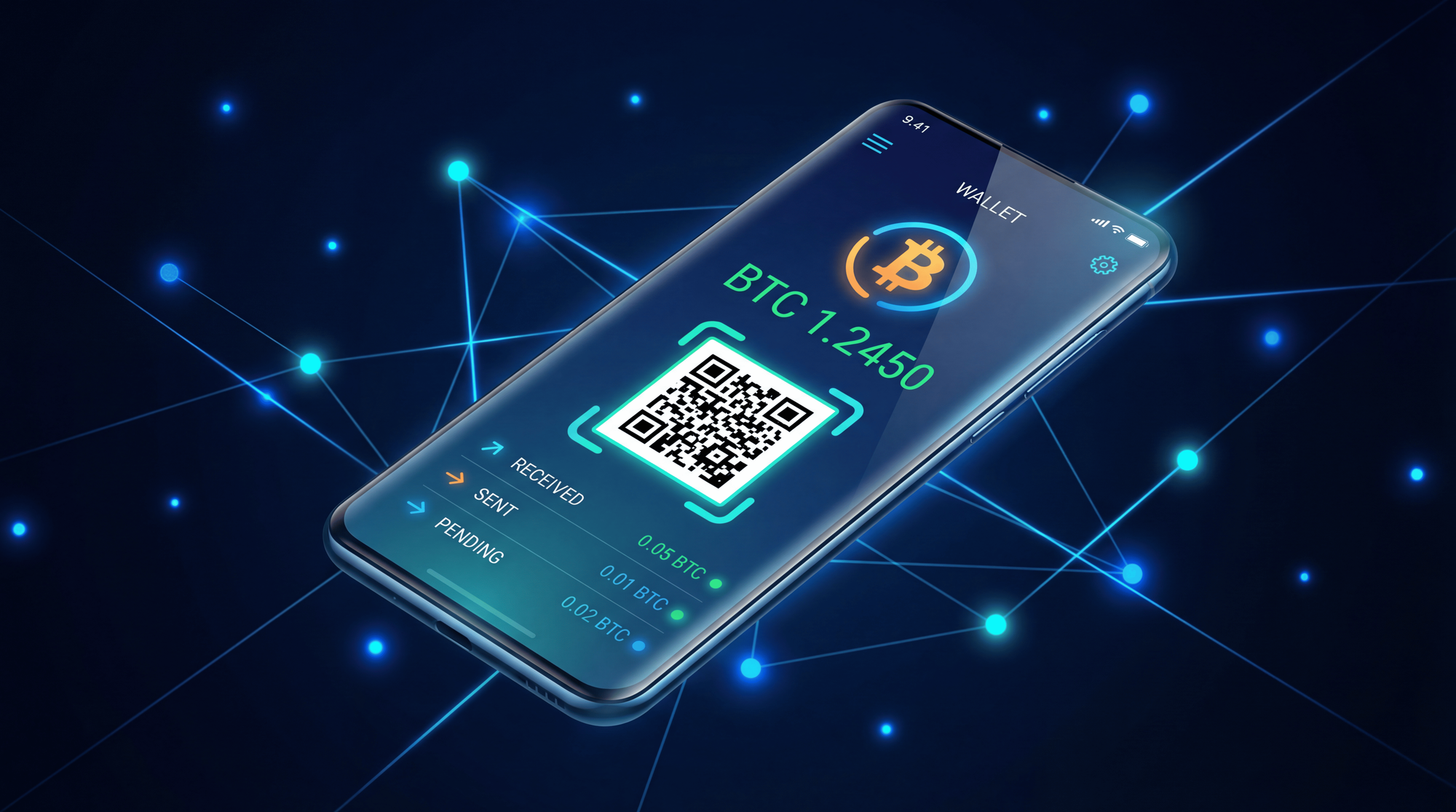 QR code: Every wallet generates a QR code representing your public address. This is what you show someone when they need to send you Bitcoin - scan the code, and the wallet auto-fills the address.