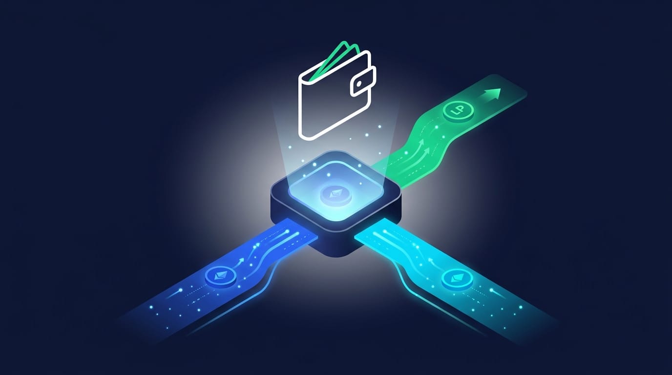 A liquidity pool is a smart contract holding two tokens in reserve - for example, ETH and USDC - that traders can swap against directly. The pool always maintains both assets; every swap shifts the ratio between them, which adjusts the price. Liquidity providers fund these pools by depositing equal values of both tokens and receive LP tokens as proof of their stake. In return, they earn a proportional share of every trading fee generated by the pool. The deeper the pool's total value locked (TVL), the less slippage traders experience.