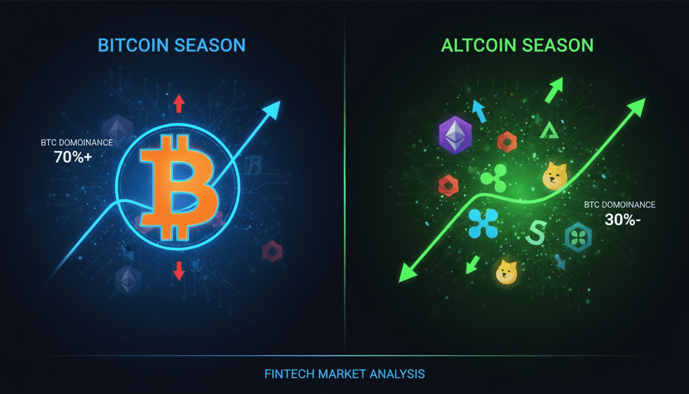 An altcoin is any cryptocurrency other than Bitcoin. The word combines "alternative" and "coin." As of February 2026, there are thousands of altcoins - from Ethereum and Solana to meme coins like Dogecoin. Whether the market favors Bitcoin or altcoins is tracked through BTC dominance (currently ~58%) and the Altcoin Season Index (currently at 43, meaning it is Bitcoin Season).
