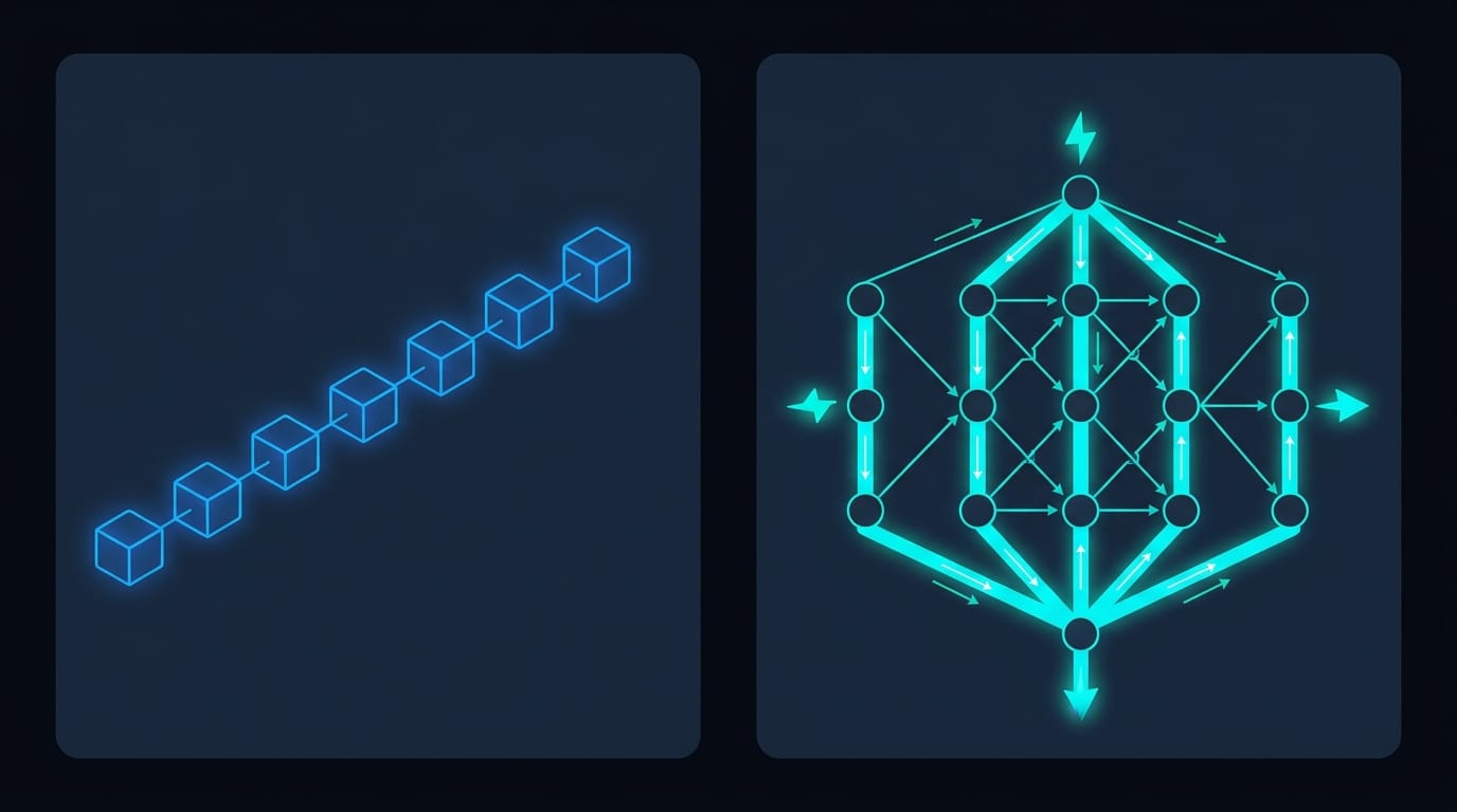 A traditional blockchain is essentially a single-lane road. One node leads the production of each new block, and every transaction must join a queue and wait its turn. Fantom's DAG architecture is more like a multi-lane highway - multiple nodes process and validate transactions simultaneously, in parallel, rather than sequentially.