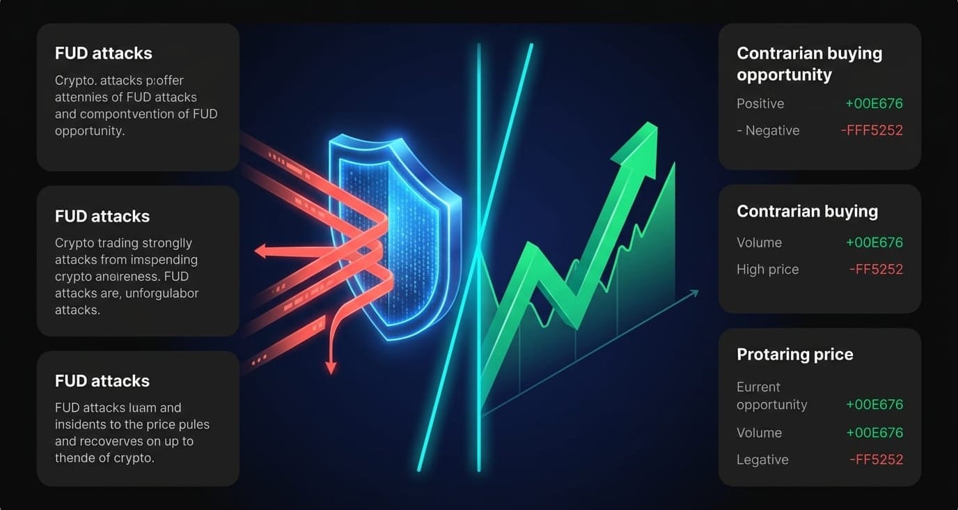 The critical caveat: this only applies when the FUD is manufactured or exaggerated. Never average down into genuine fraud or insolvency events. The FTX collapse is the definitive counter-example - holders who bought that dip lost significant capital because the underlying concern was real, not amplified. Verify fundamentals before treating any dip as an opportunity.