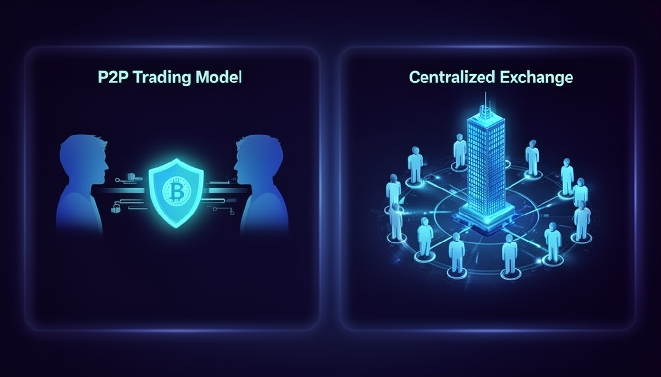 The phrase "P2P vs exchange" is slightly misleading because many centralized exchanges now include a P2P marketplace. The real comparison is between order-book (centralized) trading and P2P marketplace trading. Here is how they differ: