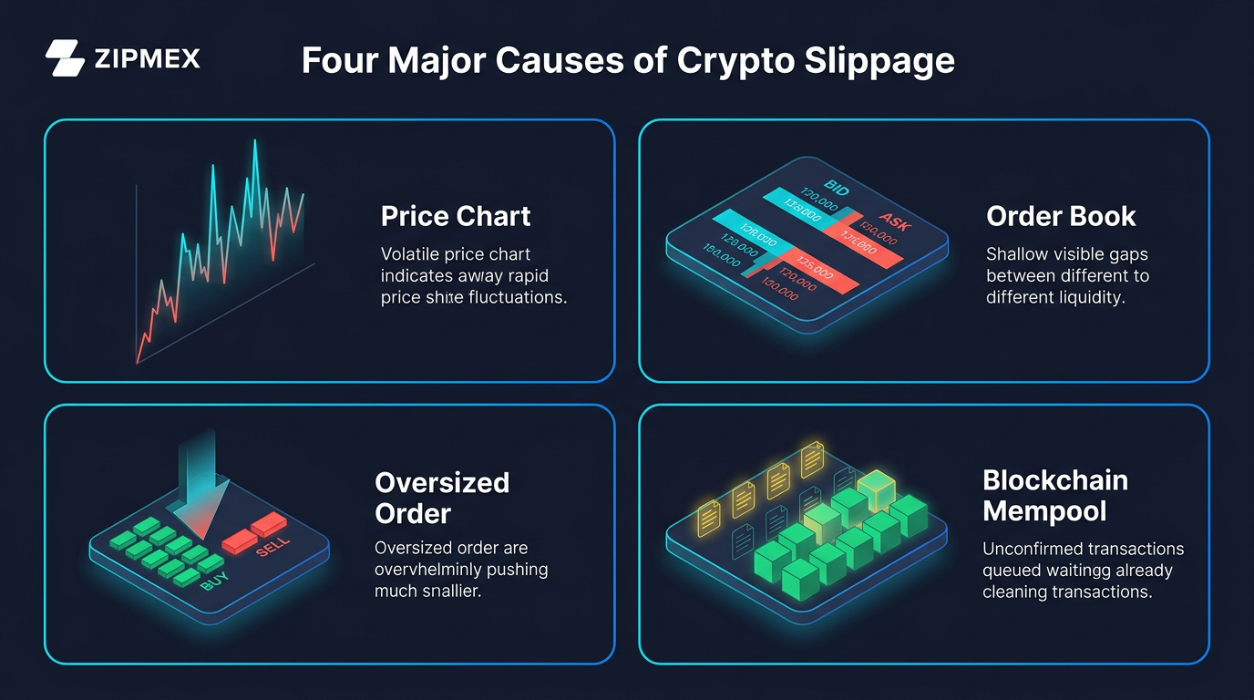 Slippage doesn't happen randomly - it has four distinct causes, and they often compound. A large order placed during a news-driven price spike on a low-cap altcoin? That's a worst-case scenario where all four triggers fire at once.