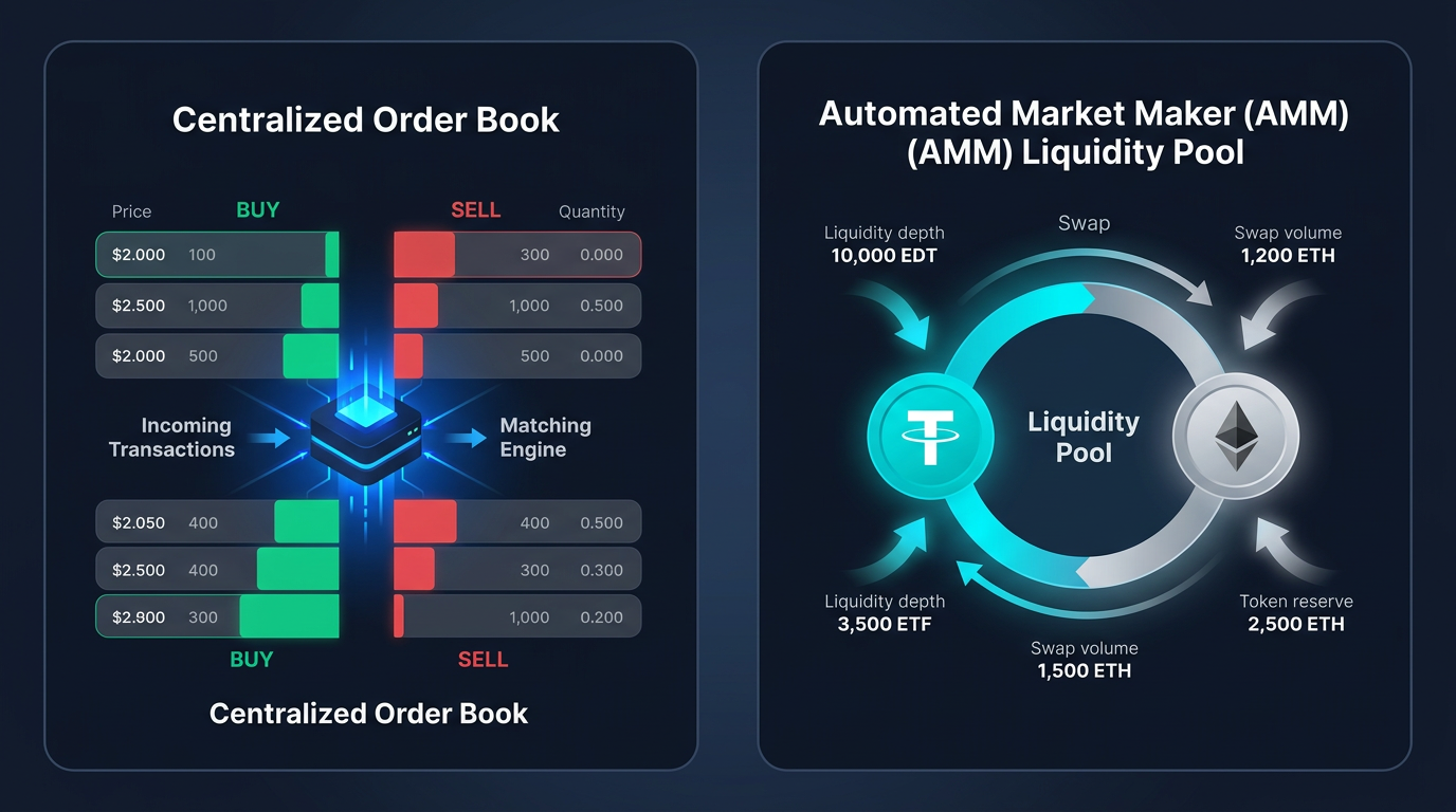 DEXs like Uniswap don't use order books. They use Automated Market Makers (AMMs), where price is determined algorithmically by the ratio of assets in a liquidity pool. Every swap shifts that ratio, producing what's called price impact - which is the DEX equivalent of slippage. Larger swaps move the ratio more, creating larger price impact.