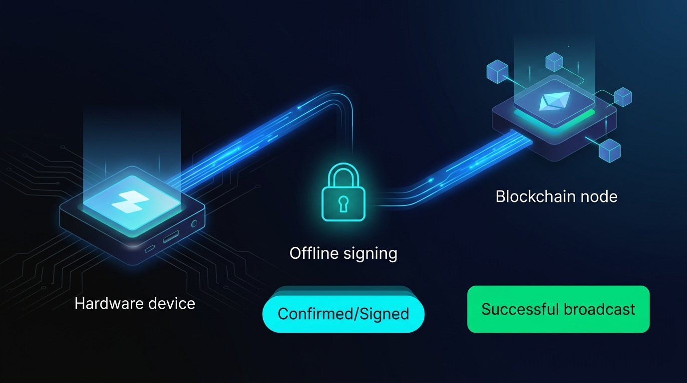 The core principle is simple: your private keys are generated on the device and never leave it. Not once. When you want to send crypto, the transaction request travels from your computer to the Trezor, gets signed offline inside the device, and only the signed result is transmitted - your keys stay put throughout the entire process.