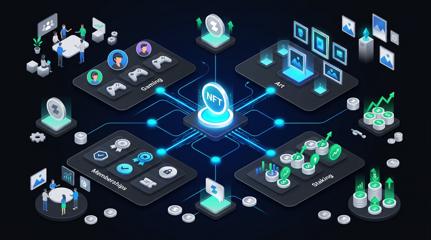 That distinction matters because it's what allows NFTs to represent ownership of anything truly unique. Digital art, music albums, in-game items, community memberships, real estate deeds, trading cards, domain names - the range of NFT use cases is broader than most beginners expect. The underlying smart contract defines the token's properties, enforces its rules, and records every ownership transfer permanently on-chain.